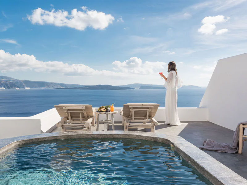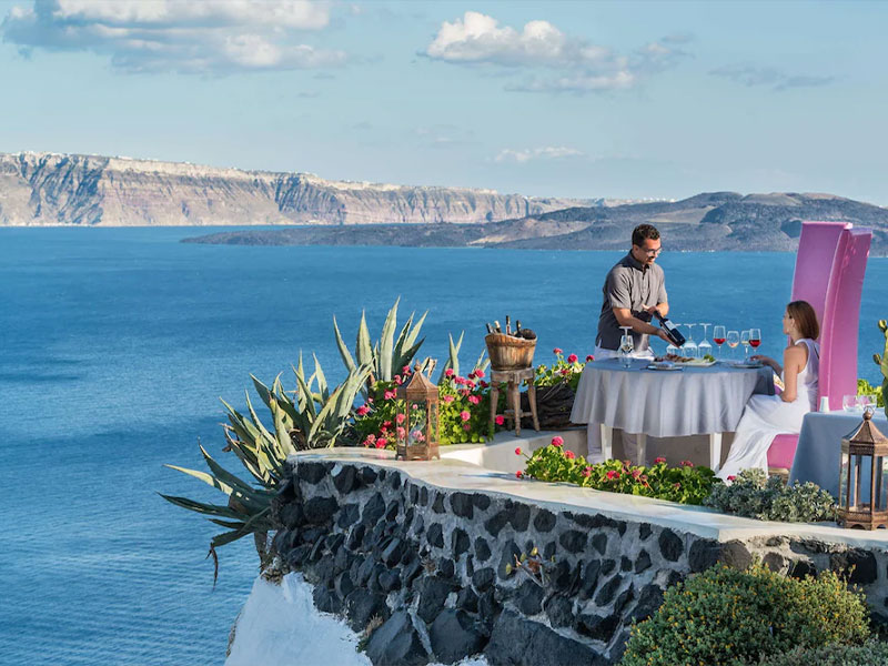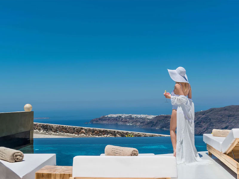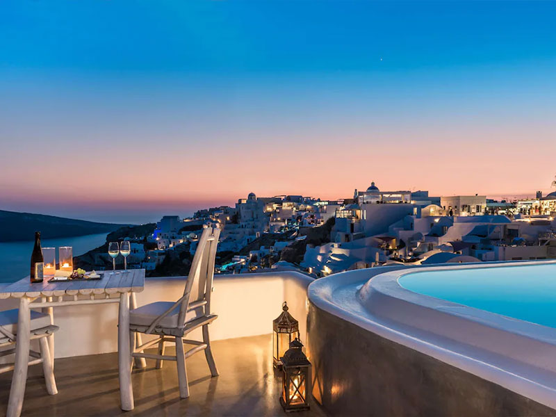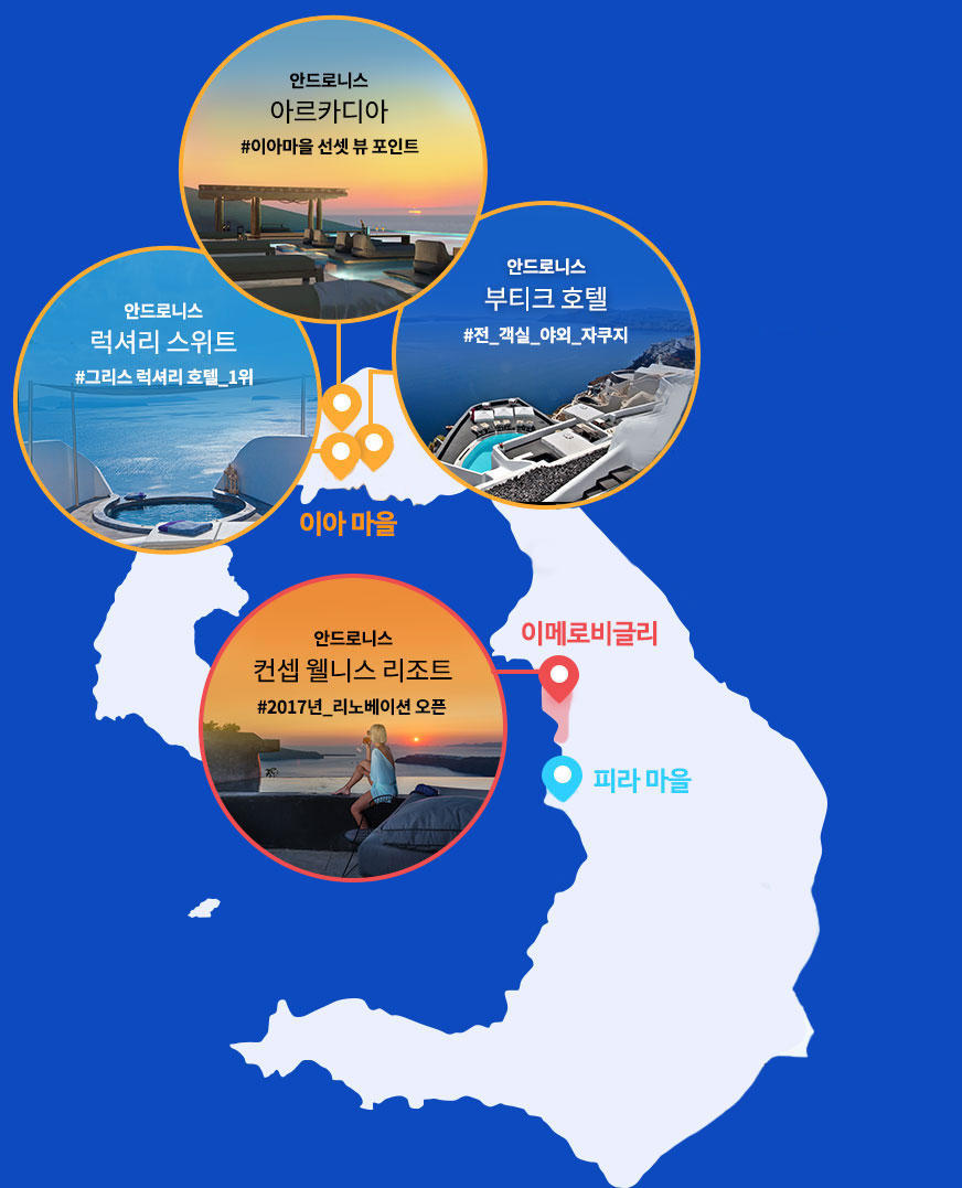 안드로니스 호텔 그룹은 하얀 건물이 밀집한 이아마을과 수도 피라마을 사이에 위치한
